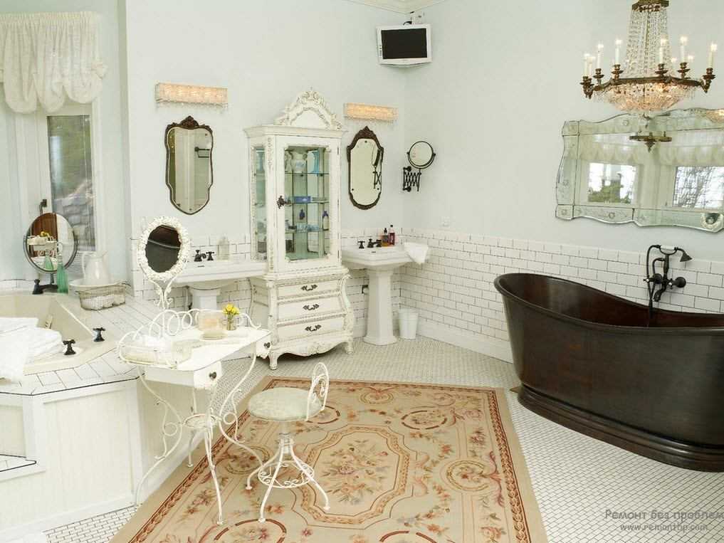 Такое оформление не терпит синтетики, ярких тонов и современных решений. Прорабатывать каждую деталь нужно долго и продуманно, такой дизайн не терпит спешки и суеты.