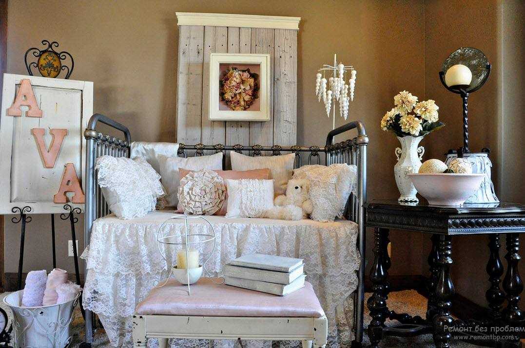 Винтаж — одна из главных характеристик стиля. Декоративность — ещё одна важная его особенность. Лёгкость — третий элемент шебби шика. Комната с интерьером в этом стиле похожа на шкатулку с жемчужными ожерельями, старинными камеями и медальонами.