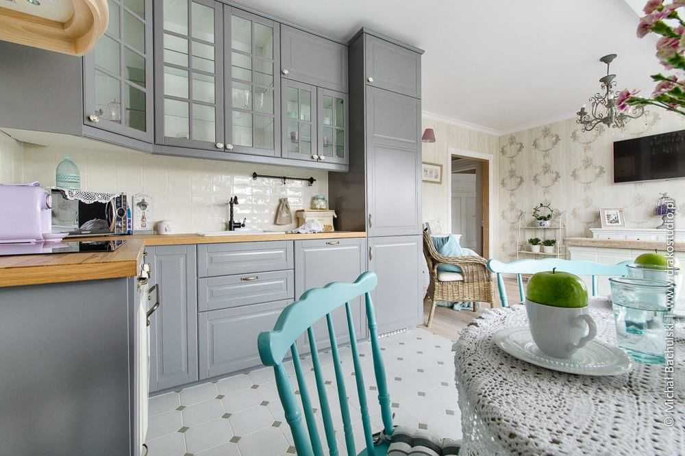 Кухня-столовая в голубом и серомИсточник houzz.se
