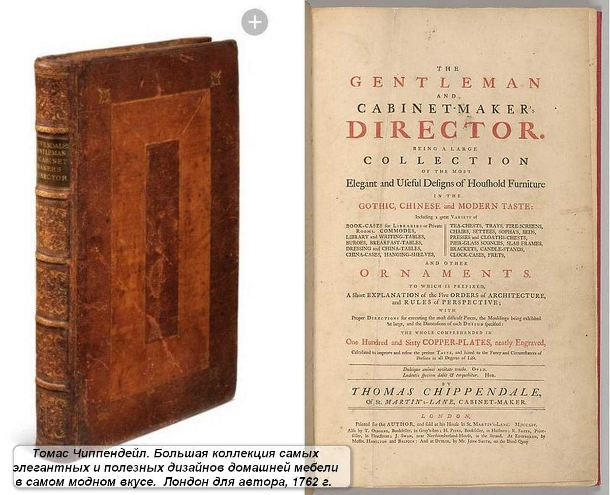 Дело в том, что в 1745 году оборотистый краснодеревщик опубликовал руководство по конструкциям мебели, которые могут в принципе заказать клиенты. Руководство «Джентльмена и директора краснодеревщика» по сути, было первым в истории каталогом продаж. До этого такую саморекламу никому в голову не пришло делать.