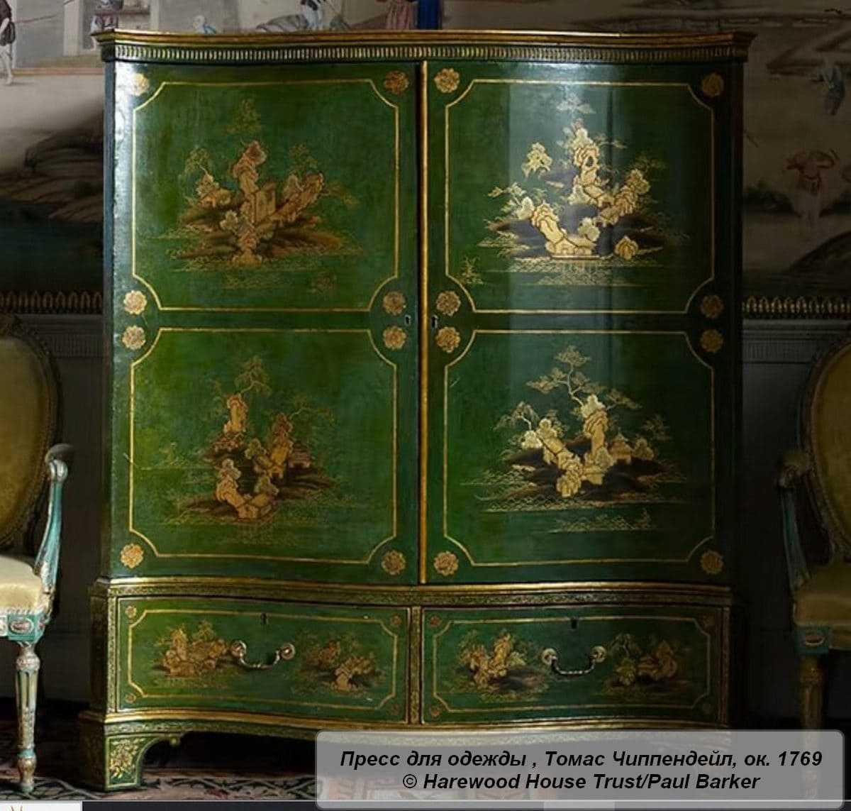 Этот комод считается лучшим неоклассическим шедевром Чиппендейла, но, возможно, он рождён талантом одного или нескольких безымянных краснодеревщиков, которые трудились в его мастерской. Чиппендейл был далеко не великим художником, а деловым гением.