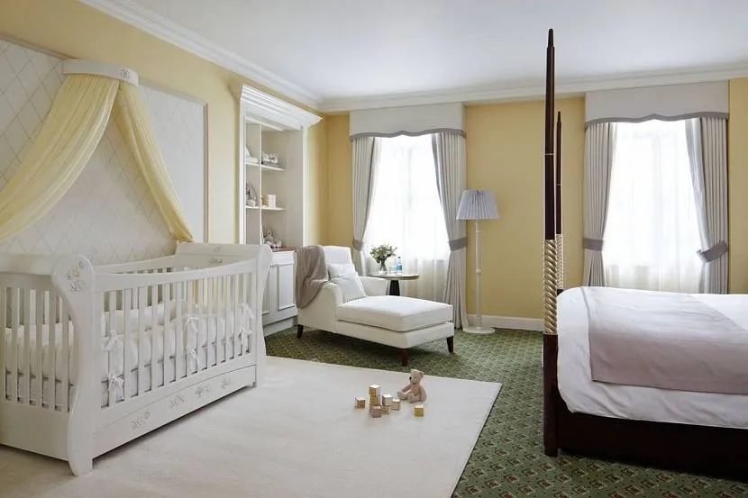 Кроватку нужно расположить так, чтобы обеспечить беспрепятственный доступ к ней как со стороны родительской кровати, так и со стороны входа.