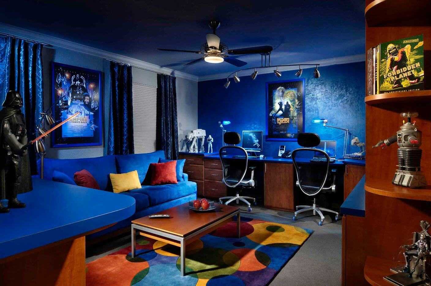 Многие любители видеоигр также являются поклонниками франшизы «Звездных войн». Тематически оформленные стен, удобное компьютерное кресло и освещение в виде световых мечей помогут окунуться в волшебную атмосферу саги.