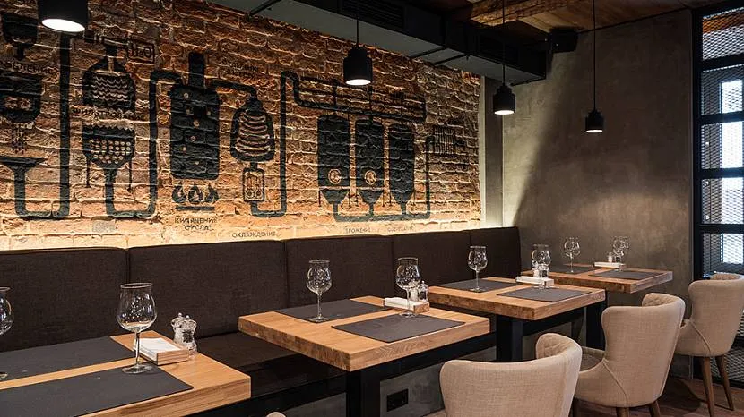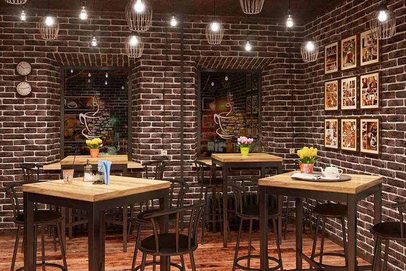 - Выбрать мебель и отделочные материалы с отменными эксплуатационными свойствами. Столы, кресла, диваны, барная стойка и стулья, напольные покрытия, двери с высокой степенью износостойкости долгое время не утратят первозданный вид, несмотря на высокую посещаемость заведения.