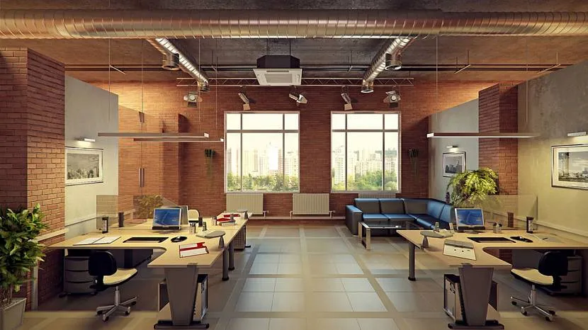 Светлый офис в стиле лофт с правильно подобранным освещением.