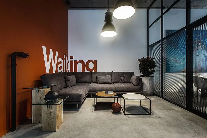 Офис в стиле лофт оформлен знающим дизайнером. В соответствии со стилем стены отделаны кирпичом.