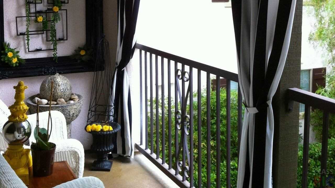 Открытый балкон также можно оформить в восточном или современном стиле, используя те же мягкие подушки, ковры, столики.