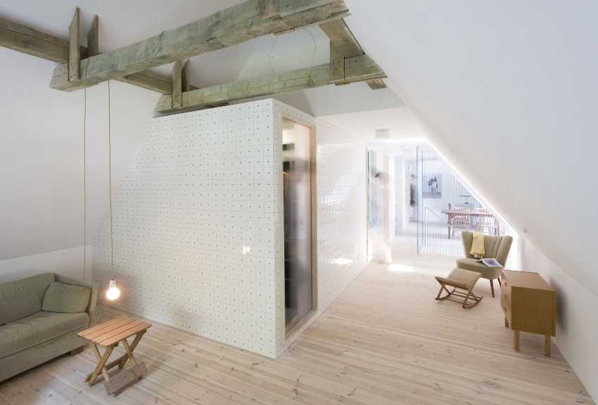 В загородном доме и коттедже, над баней и сауной в мансарде можно создать уютную спальню, комнату для гостей, детскую комнату, зону для отдыха. Отлично подойдет мягкая зона с глубокими креслами и диваном для отдыха в гостиной.