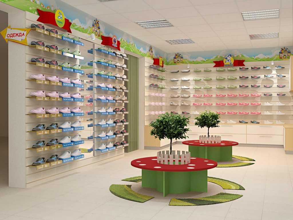 Удачным ходом будет установка телевизора, по которому показывают мультфильмы. Дети с удовольствием проведут у вас больше времени, пока родители спокойно подбирают обувь.