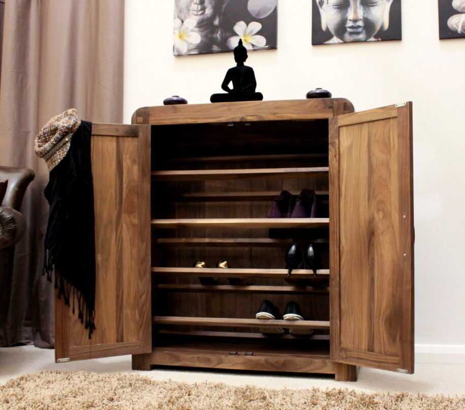 В интерьере комнаты обувной шкаф является весьма заметным предметом мебели