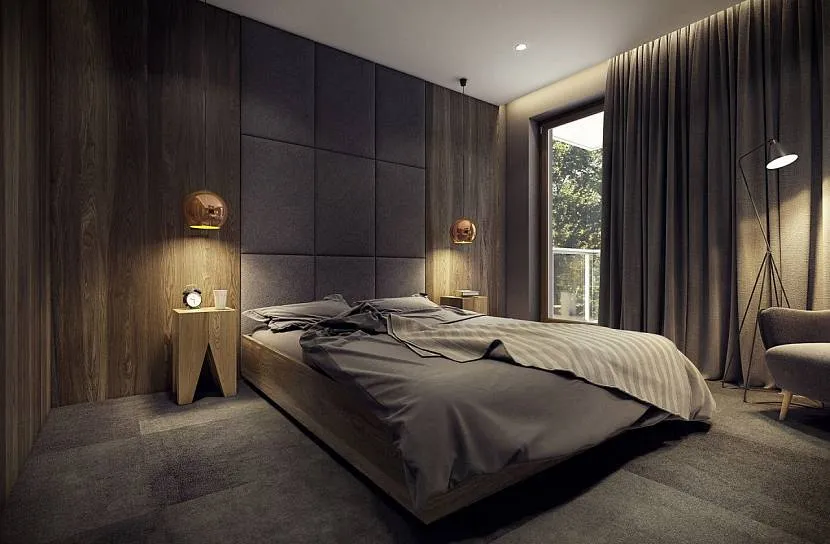 Темная спальня идеально подходит для отдыха. Это связано с тем, что уровень природного освещения здесь несколько ниже. В результате человек быстро расслабляется и засыпает. Также минимальное освещение позволяет создать романтическую обстановку в спальне, что является не менее важным.