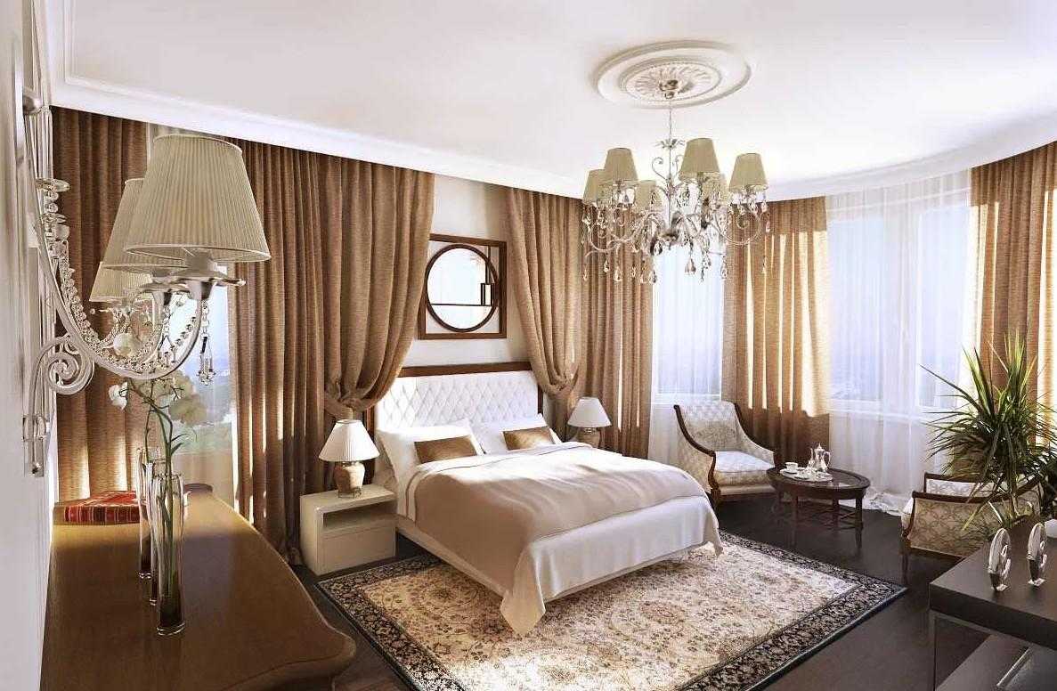 В современном дизайне интерьеров нет более модного цвета, чем белый. Он хорошо сочетается с такими же светлыми тонами, но и с контрастными будет выглядеть отлично. В бежевом интерьере спальни белым может быть даже ковер, а также кресла, занавески, отделка, декор и аксессуары.