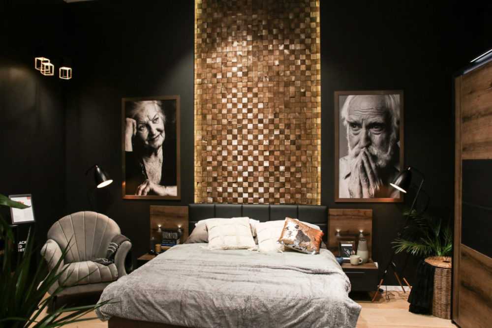 Темная мебель для спальни будет выглядеть идеально и гармонично в просторной, светлой комнате с высокими потолками, уравновешивая и гармонизируя пространство, создавая атмосферу тепла, безопасности и комфорта.