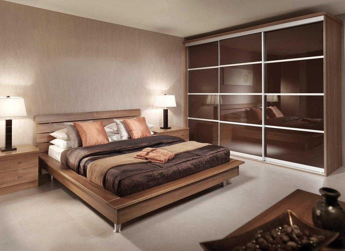 Интерьер спальни в коричнево-бежевых тонах, фото