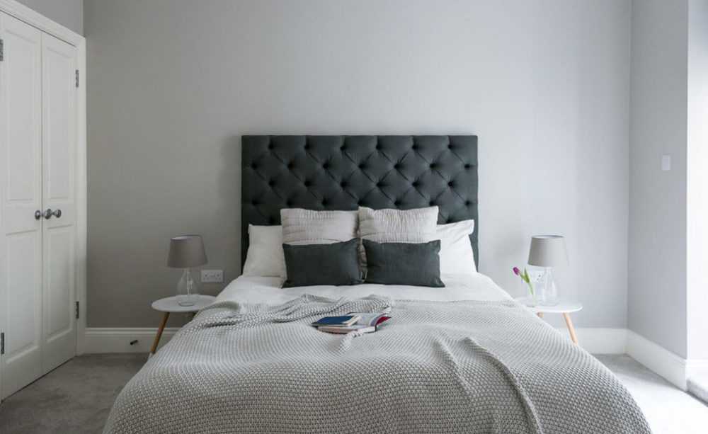 Однако, если спальня небольшая, не стоит перегружать пространство. Вместо чистого серого цвета используйте его более светлые оттенки либо серебристые цвета.