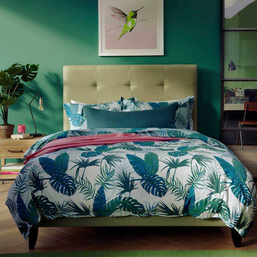 Для интерьера спальни с большими окнами, выходящими на южную сторону, в которой и так много света, лучше применять оттенки зеленого с преобладанием синего тона, от которых веет прохладой.