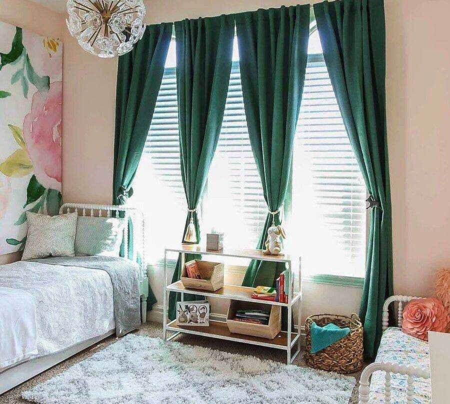 Для спальни, выполненной в светлых зеленых оттенках, нужно выбирать более темные шторы и наоборот. Сюда органично подойдут как однотонные портьеры, так и ткани с вышитым узором или рисунком.