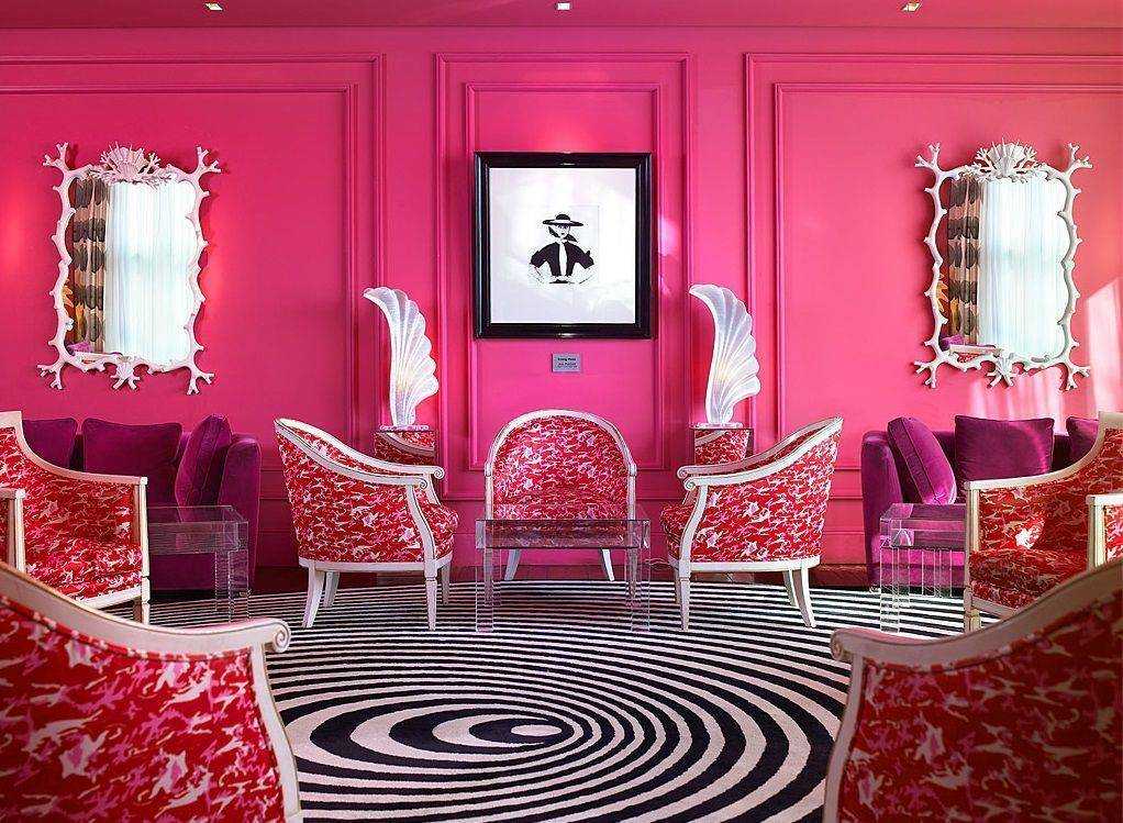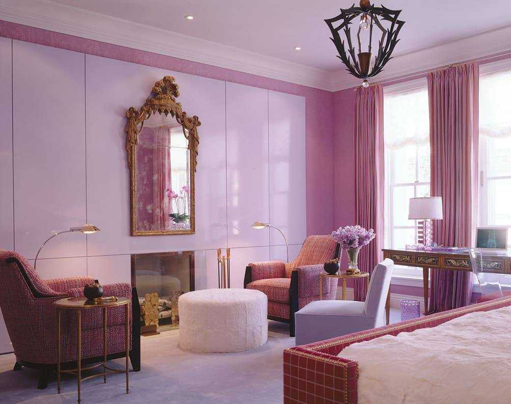 Помимо отделки розовый используется в качестве наполнения комнаты, например мебель или текстиль.