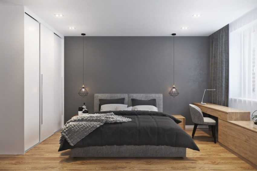Современная спальня не приветствует монохром, поэтому серый здесь может быть одним из тонов в комбинации с другими цветами.