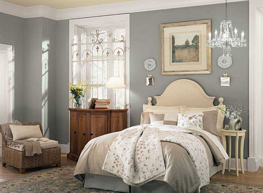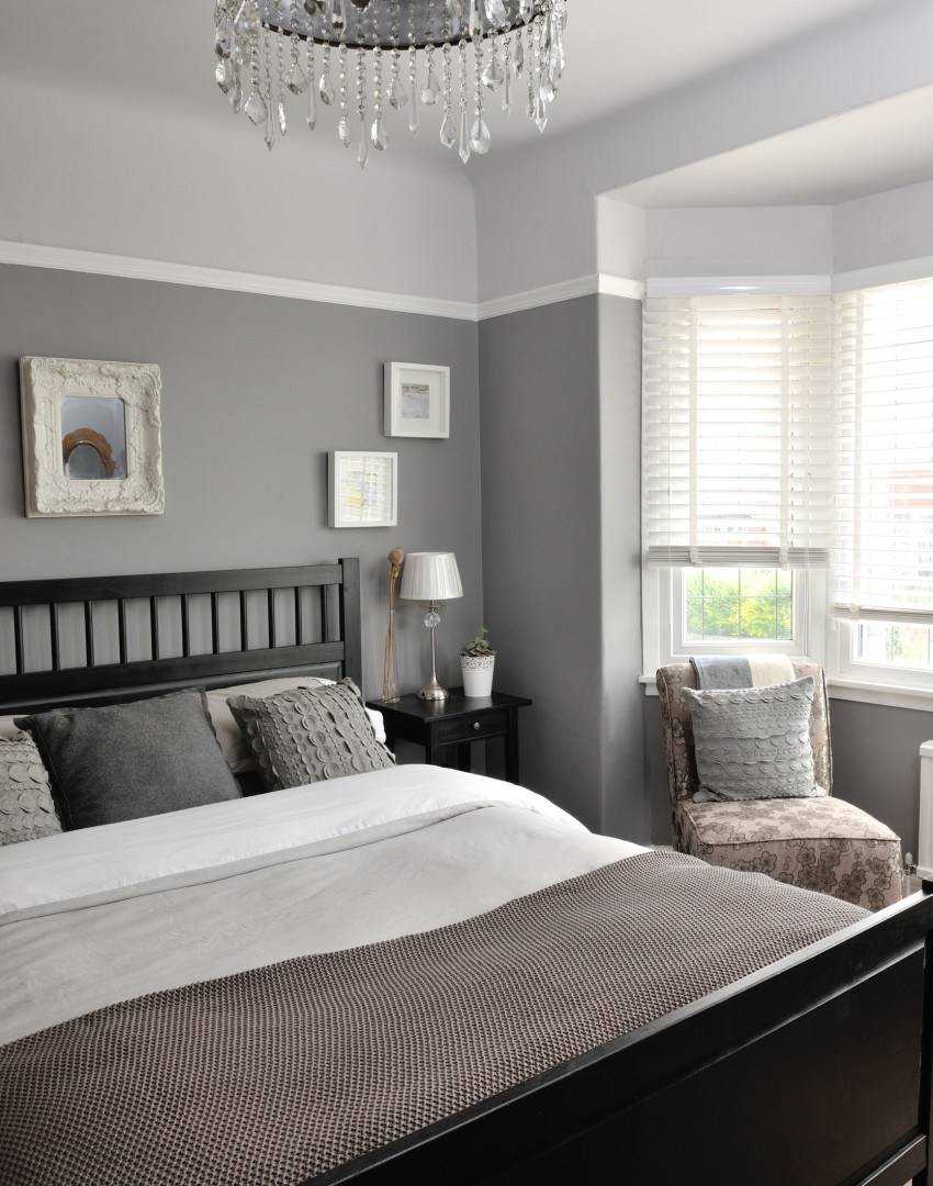 Стенам больше всего подходит светло-серый цвет, текстиль же выбирается из более темных оттенков.