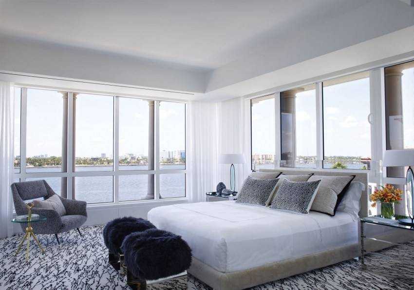 Все вариации белого (молочный, мрамор, слоновая кость, жемчужный) являются универсальным вариантом для оформления спальни.