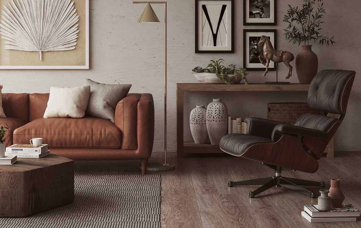 - Акцент на деталях: мебель для гостиной лучше всего выбрать в цвете отполированного дерева или классическую полуглянцевую, но с металлическими деталями. Таким образом вы получите крутой оптический эффект.