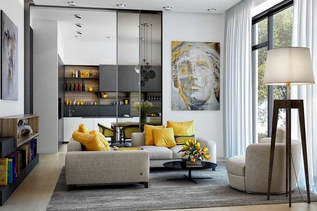 При этом можно отделить несколько зон, разграничив их с помощью стоек, колон, арок или расстановки мебели. Если мешает проходная гостиная, дизайн, предполагающий ее объединение с другими помещениями, также решает вопрос.