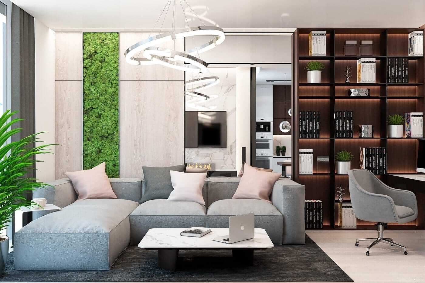 - Зонирование: если вы грамотно все разграничите, то получите превосходный результат. Например: световое зонирование, раздвижные двери для кухни (если она совмещена с залом).