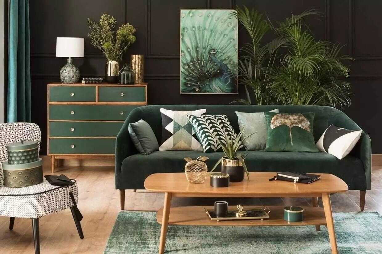 - Зеленый. Находясь в помещении такой расцветки, у человека создается впечатление погружения в живую природу. Зеленая гостиная поможет хорошо отдохнуть после рабочего дня. Ее можно разбавить отдельными композициями фисташкового оттенка.