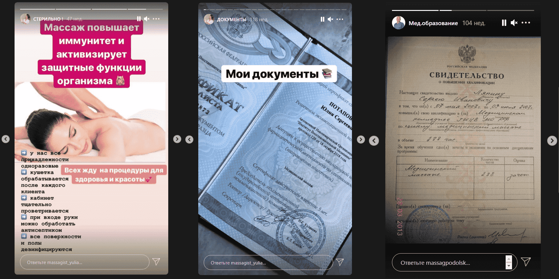 А значит всевозможные свидетельства, дипломы и сертификаты у вас есть. Разместите их в соцсетях, лучше — в актуальных Историях, чтобы они были в одном месте и на виду.