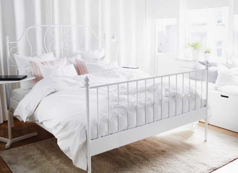 Миннен — одна из самых популярных кроватей в магазине Ikea. Она сделана из металла, может быть в черном или белом цвете, легка в использовании и долговечная, ее длину можно менять. Минусом является то, что она сделана из металла, а он может быть холодным.