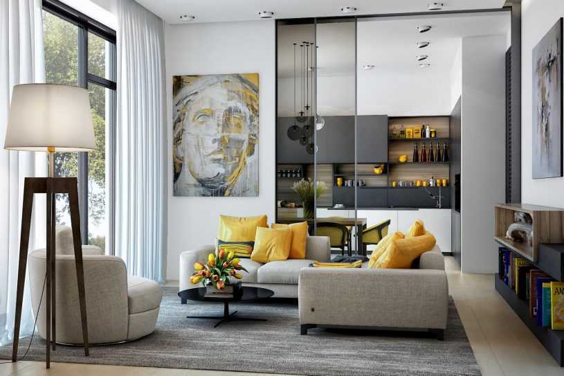 Гостиная. Изящные интерьеры в классических светлых, пастельных, ярких или приглушенных оттенках, с мягкими природными мотивами, с элементами лофта, классики, ретро, с акцентным оформлением окна.