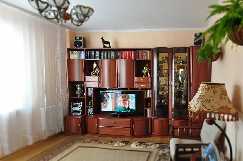 В гостиной янтарные тона мебели из ольхи удачно подчеркиваются жемчужно-серым фоном обоев, дымчатыми легкими занавесками либо серебристыми гардинами. Однако при сочетании холодных и теплых оттенков необходимо что-то нейтральное, к примеру, молочно-белая обивка мягкой мебели и светлый ковер. Такой же прием часто используется при комбинировании кухонного гарнитура из красноватой ольхи со столешницей и фартуком под камень. Бежевые стены и пол, отделанный светлой плиткой, сгладят слишком резкий контраст и уравновесят палитру.