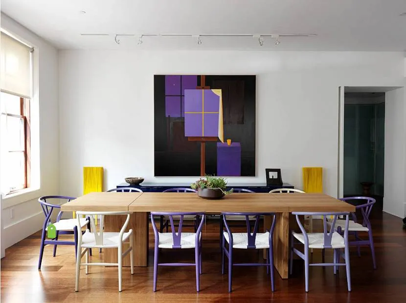 Для минималистического стиля и хай-тека характерна игра контрастов. С белым великолепно гармонирует черный. Неплохо будет смотреться и красный. Сочетание цветов мебели радует глаз – фиолетовый комбинируется с зеленью или оранжевым.