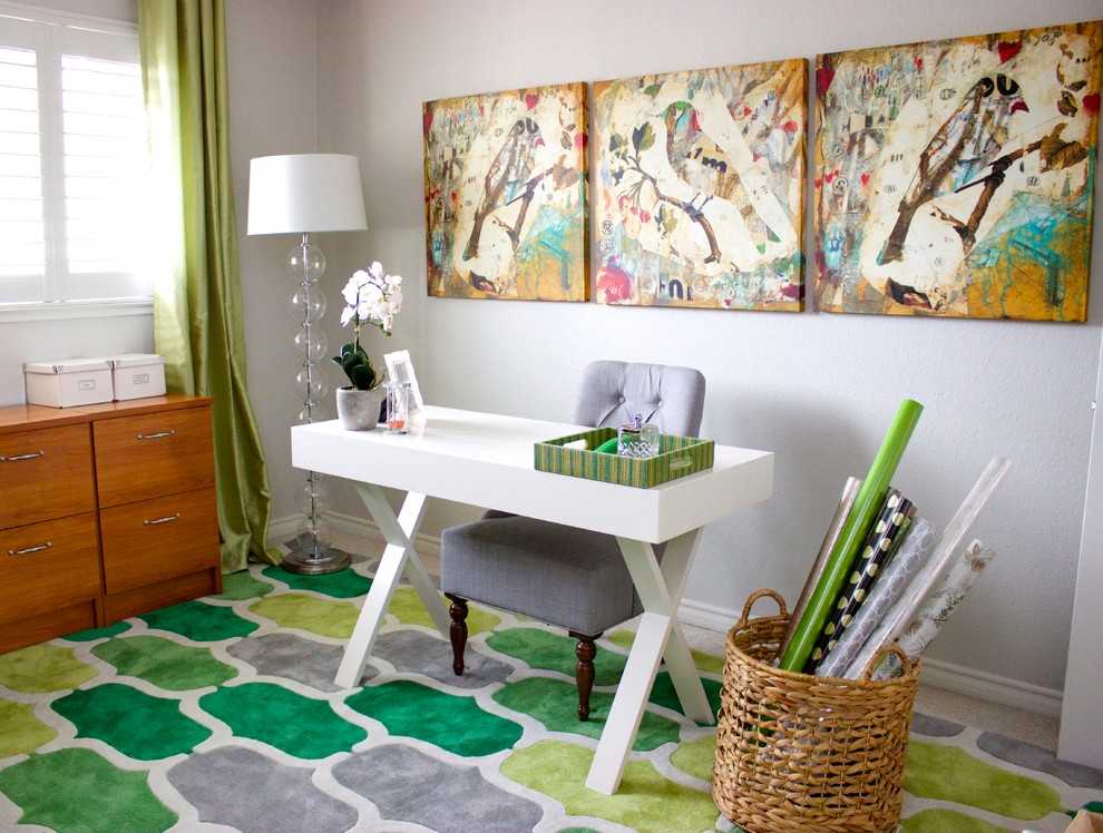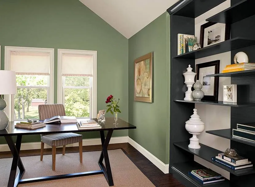 Рабочая зона в гостиной, с зелеными стенамиИсточник topdom.ru