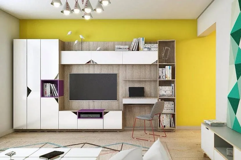 Стенка в гостиную с компьютерным столомИсточник wallytally.ru