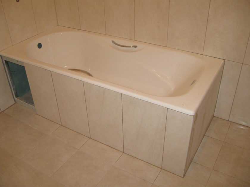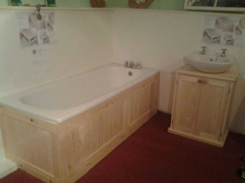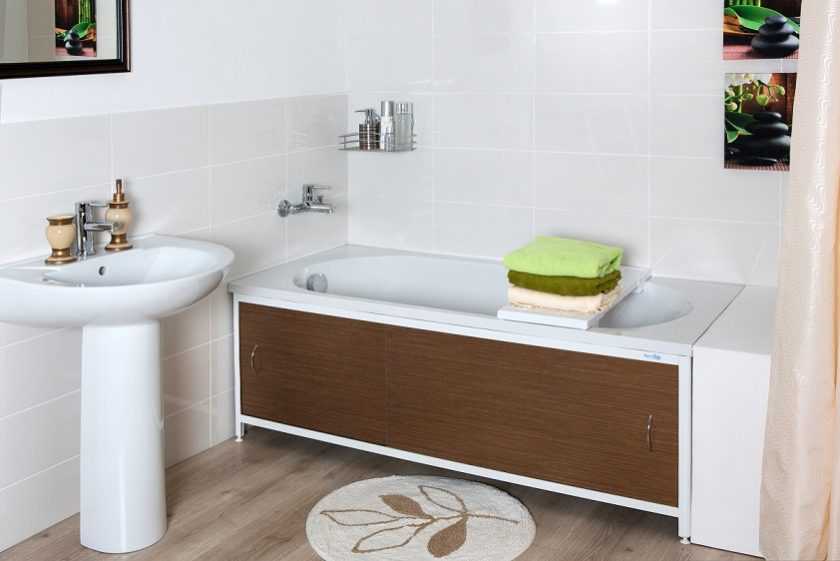 Изначально выполняется основа из дерева. Доски, что пропитаны средством против грибка и вскрыты лаком, укладываются по периметру ванны, а на них выполняется крепление стоек.