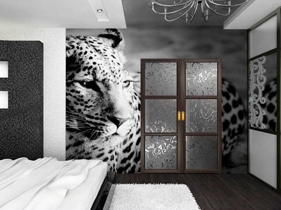 Стены часто драпируются шёлковыми или атласными тканями, а полы декорируются шкурами зверей. Сами ткани желательно выбирать однотонные, с геометрическими или зигзагообразными орнаментами, полосами или клетками, а также принтами, имитирующими окрас животных (зебр, жирафов, леопардов или тигров).