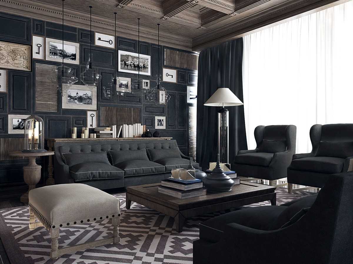 Чёрный выделен как акцентный из-за того что обычно имеет броскую бархатную текстуру, когда речь идёт про мебель, или контрастные узоры на обоях, когда чёрный используется на стенах.