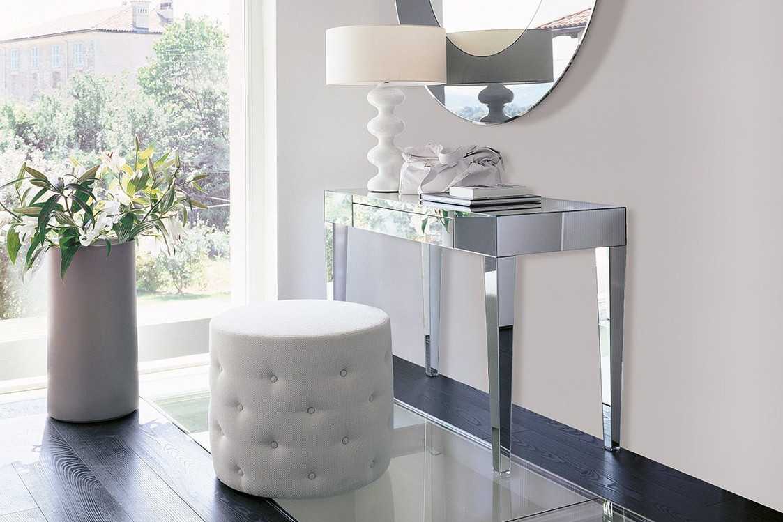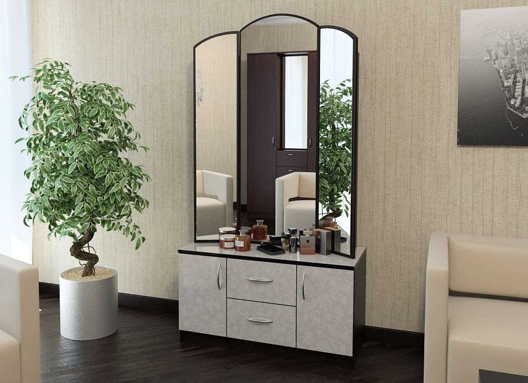 трюмо – тумба с большим зеркалом в центральной части. Такой столик зрительно увеличивает любое помещение;