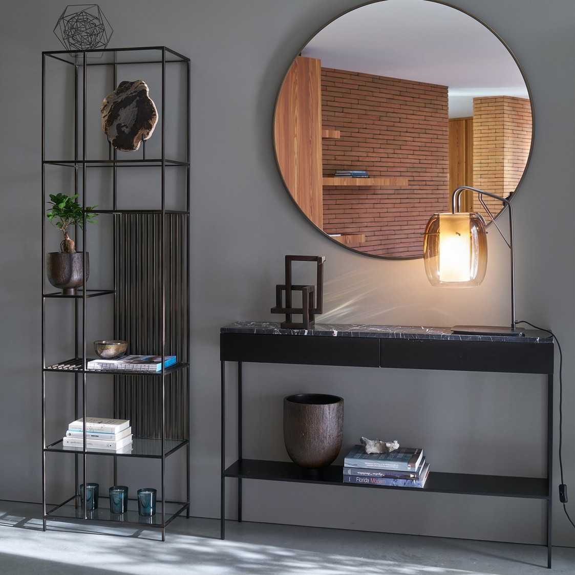 Современные, довольно необычные изделия из металла, пластика и стекла встречаются не реже. Широкий выбор позволяет подобрать трельяж из такого же материала, как и остальная мебель в помещении.