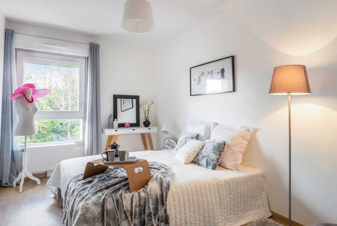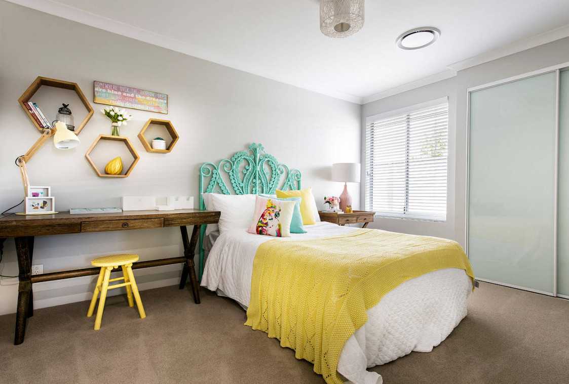 | В спальне лучшим решением будет выбор углового варианта. Это позволит значительно сэкономить площадь |