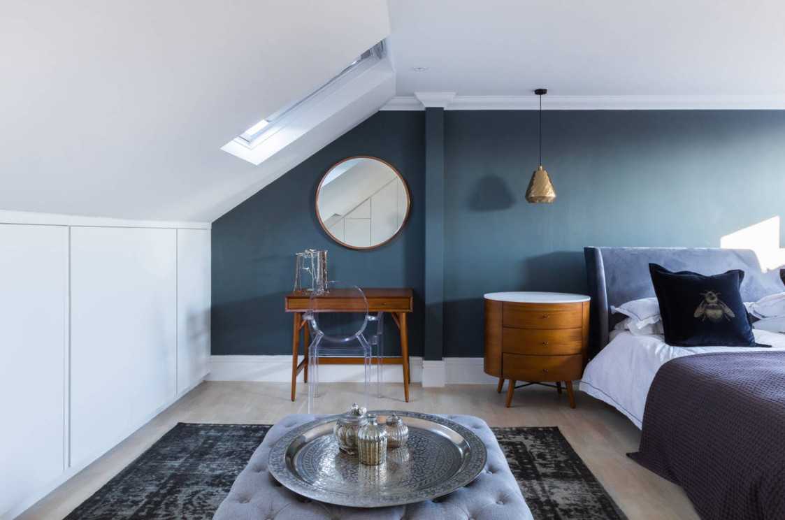 Внутреннее оформление мансарды полностью зависит от геометрии пространства, которое может обладать формой треугольника, прямоугольника, быть ассиметричным и иметь эркер или лоджию. Чаще всего сюда выбирают не слишком высокие мобильные столики-трансформеры.
