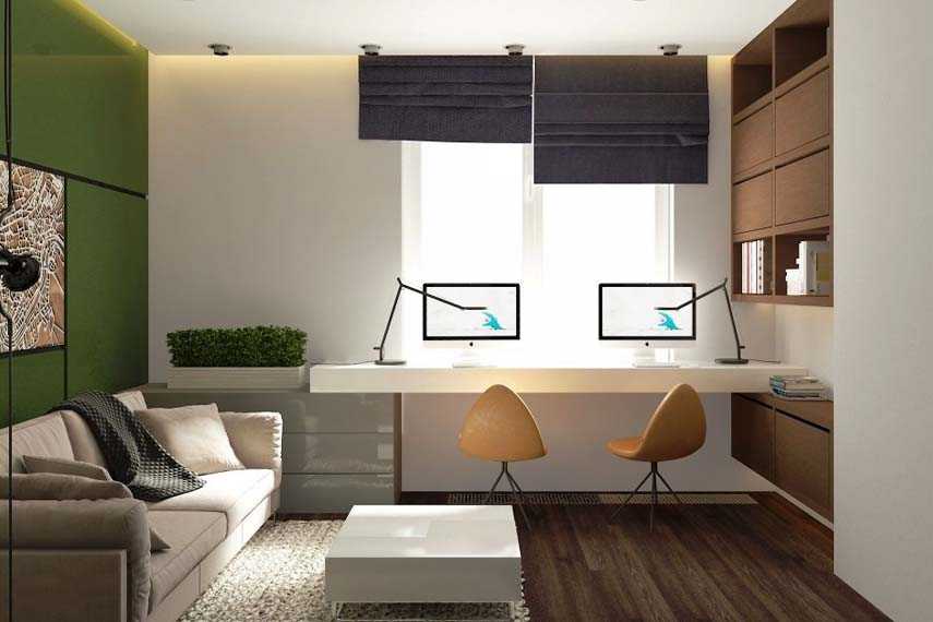 Проходы остаются максимально свободными, что важно с точки зрения удобства и безопасности. Объединить подоконник и рабочее место – удачная идея
