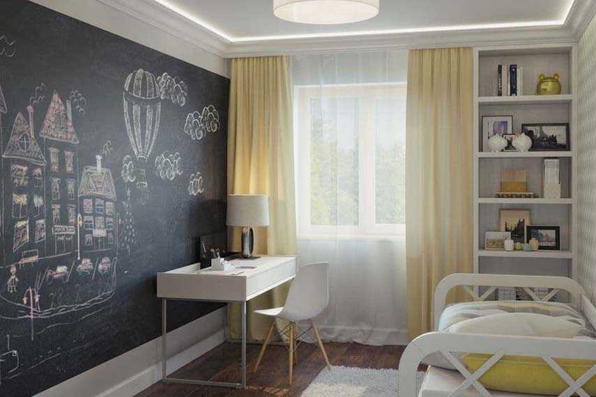 Вверху же будет размещен детский уголок, где расположится доска для рисования.