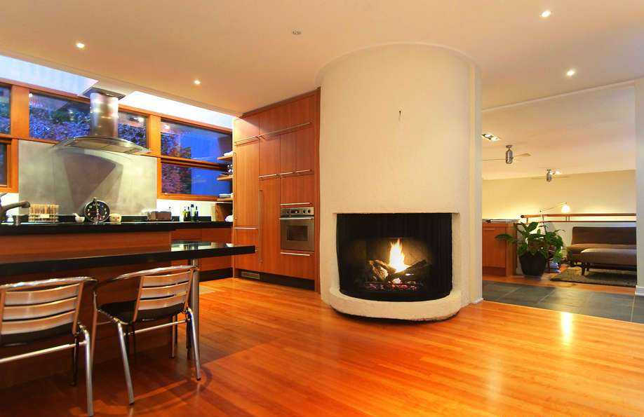 Камин в доме семьи вампиров отличается от стандартных образцов тем, что он имеет вид полукруглой башни и находится одновременно и на кухне, и в гостиной этого необычного жилища.
