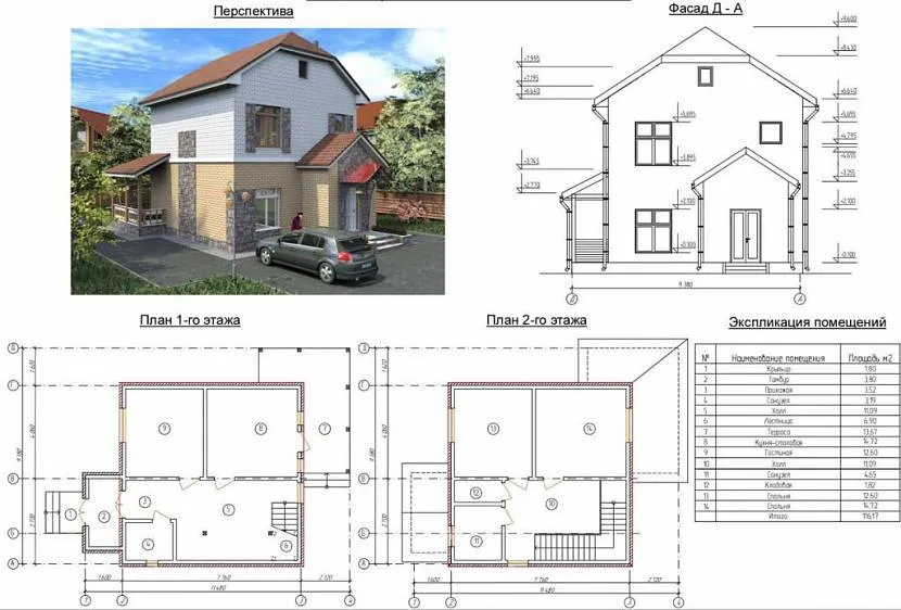 - Площадь второго этажа: 87,2 м2.