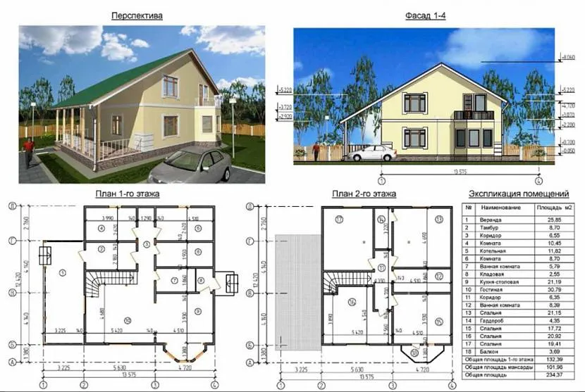 Проект двухэтажного дома площадью более 250 м2Источник demo2.sbsite.ru