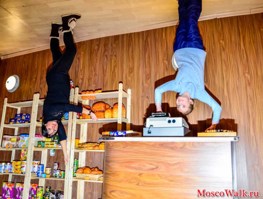 Просмотр может затянуться надолго, ведь музей состоит из двух этажей. Спальня, гостиная, даже ванная – все воссоздано с неимоверной точностью и реалистичностью. Единственное отличие от привычных всем помещений – все предметы интерьера находятся над головой. Сотрудники музея позаботились о том, чтобы никто не унес экспонаты «на память», все прочно закреплено и не грозит свалиться сверху.