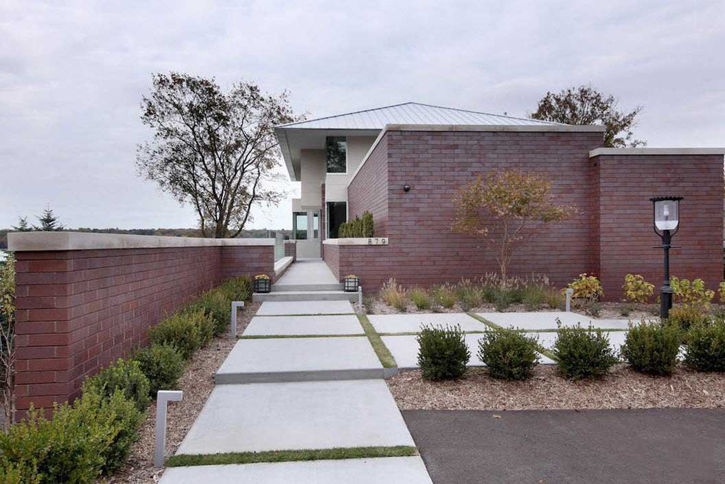 Отделка основных стен кирпичной кладкой в панорамном двухуровневом доме